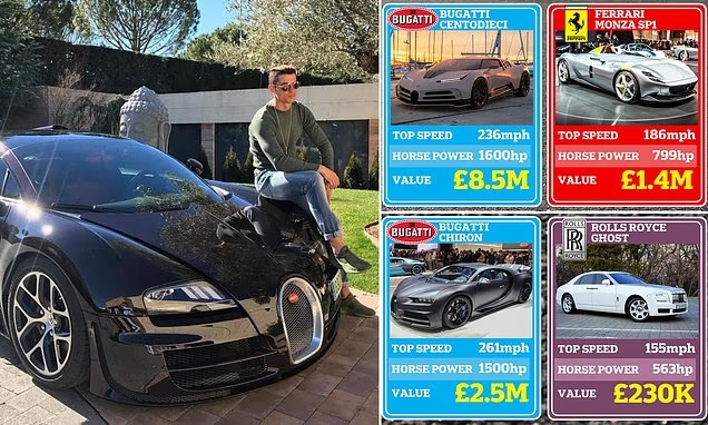 C罗领有的其他车辆包括一辆银色法拉利、一辆驰骋AMG GLE 63和一辆玄色驰骋,以及一辆价值200万镑的布加迪Chiron、一辆价值50万镑的法拉利599 GTO和一辆价值75万镑的迈凯伦塞纳。