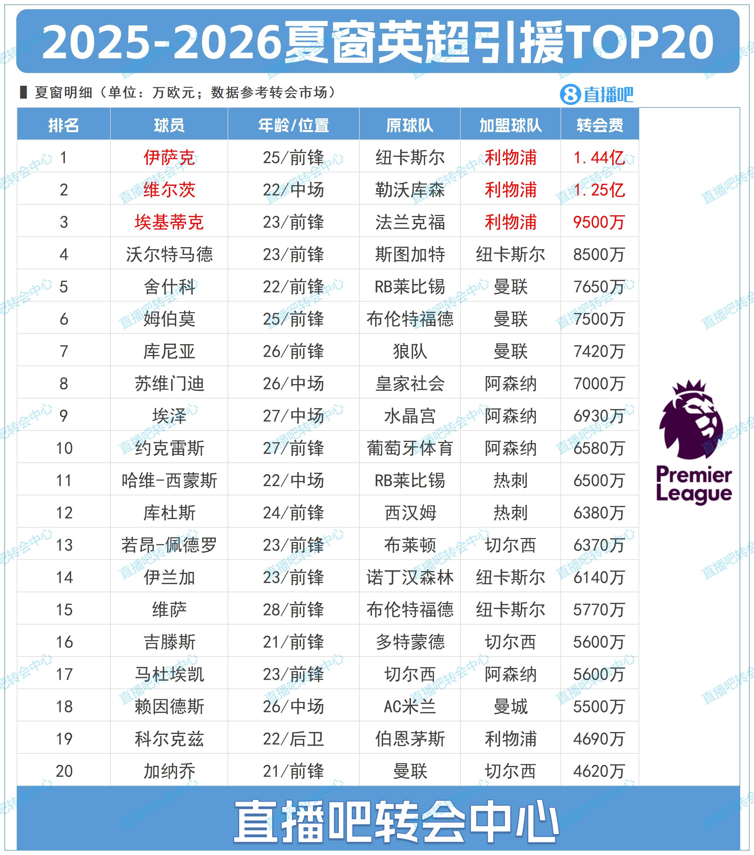 【转会中心】为吧友们记忆了英超夏窗TOP20转会