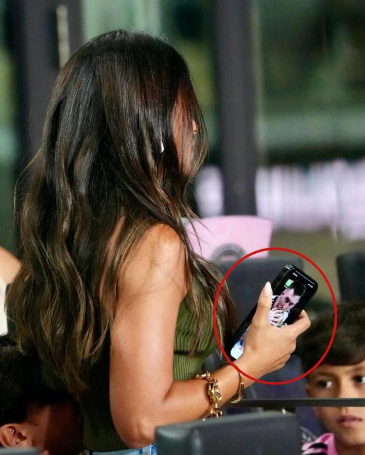 安东内拉本场比赛带着男儿们也来到了现场不雅赛,有球迷拍到安东内拉手机壁纸为梅西亲吻苟且神杯霎时