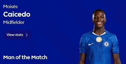 1助攻2要道传球4羁系!凯塞多当选切尔西1-0热刺一役全场最好
