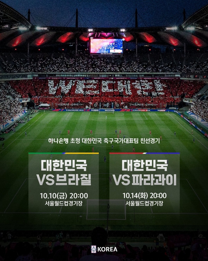 除此之外,韩国队还将在北京工夫10月14日19点对阵巴拉圭,处所相同为首尔寰宇杯畅通场。