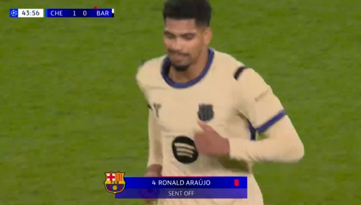本场比赛上半场第44分钟,巴萨场上首发队长阿劳霍贯注中铲倒库库雷利亚,吃到本场第二张黄牌,两黄变一红被罚下场,巴萨下半场十东谈主作战再丢两球,最终0-3不报怨手。
