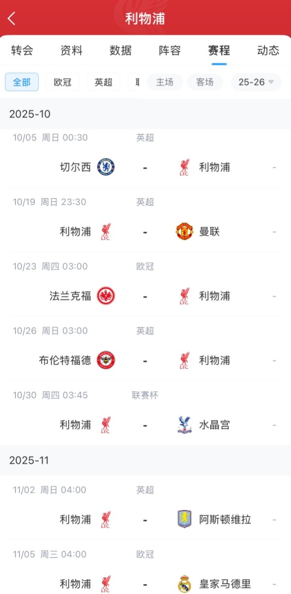 这赛程顶得住❓利物浦2连败,10月将战蓝军曼联法鹰水晶宫