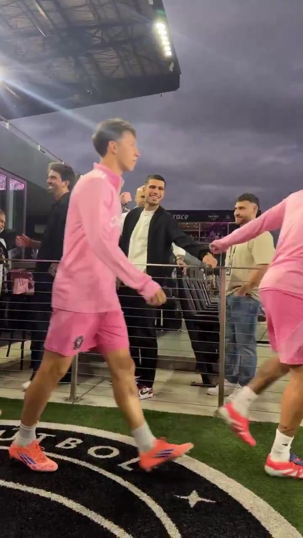 网坛名将阿尔卡拉斯现场不雅看迈阿密vs纽约城,与迈阿密球员寒暄
