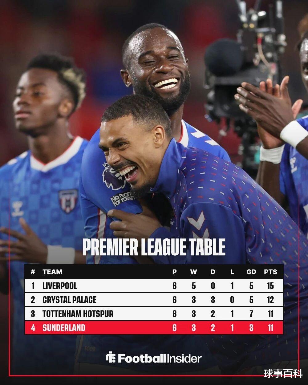 桑德兰的大手笔引援,让他们成为了英超新赛季的最大黑马。英超前6轮比赛,桑德兰打败过西汉姆联、布伦特福德、诺丁汉丛林3支球队,战平了水晶宫、维拉两支劲旅,仅在“升班马德比战”中,0-2输给了伯恩利。而这亦然他们升入英超之后的独逐个场败仗。6轮比赛事后,桑德兰积11分排行联赛第4位。
