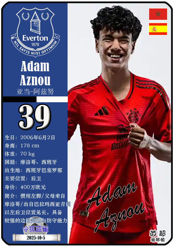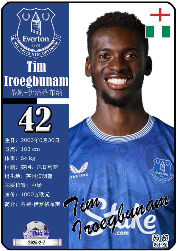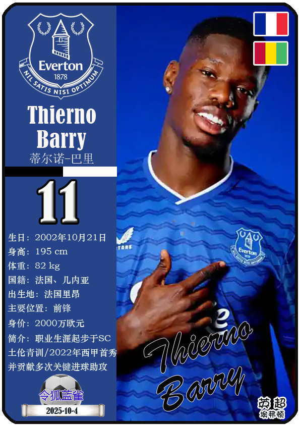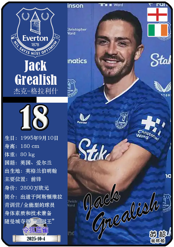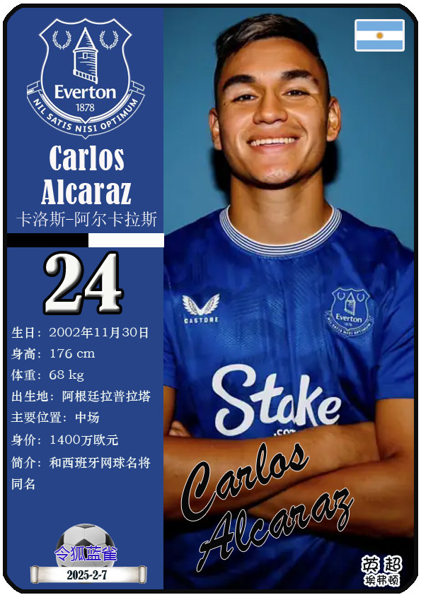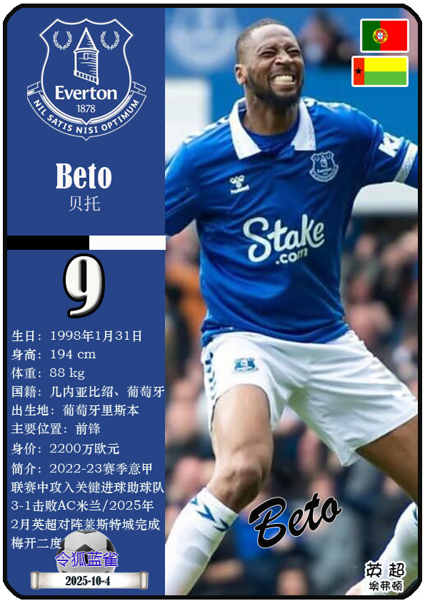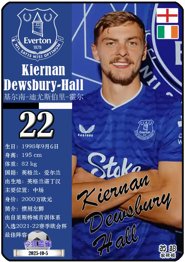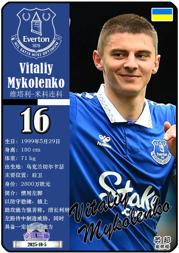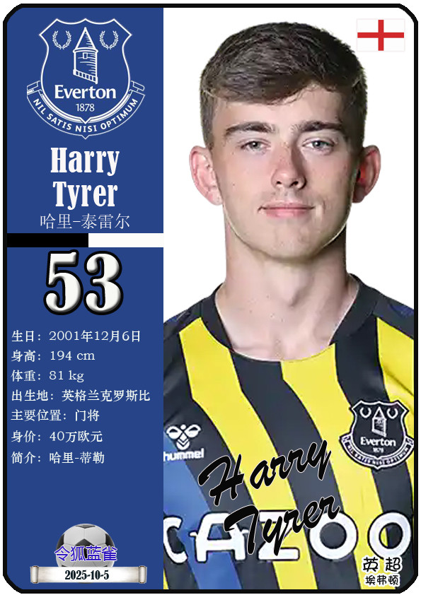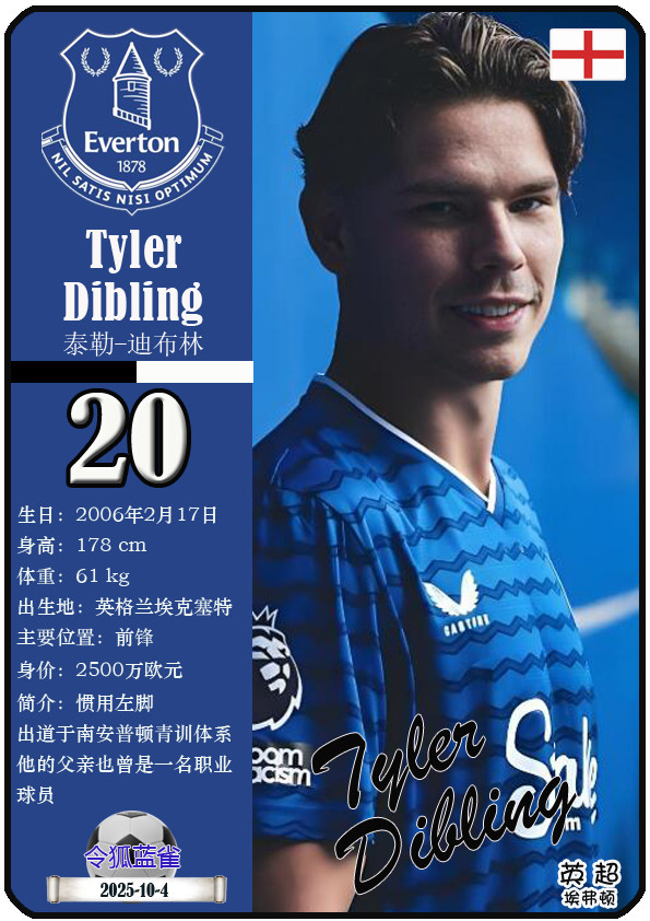 球星卡(英超): 埃弗顿足球俱乐部23东谈主一览(25/26赛季)