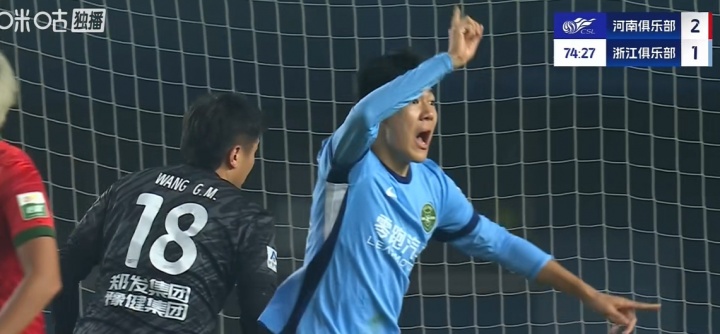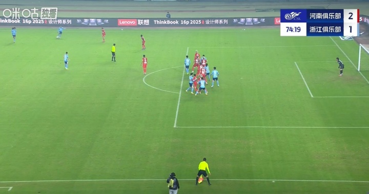 10月25日讯 河南vs浙江第75分钟,20岁张瑷晖头球破门,但边裁顽强暗意越位!VAR未介入。