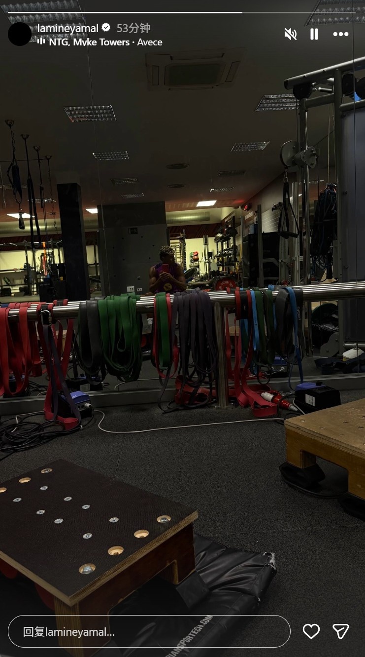 亚马尔更新社媒,晒我方在健身房西宾像片