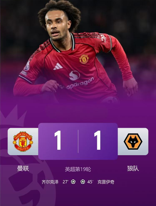 上半场王人尔克泽首开纪录+头球乌龙助攻,海文抢断反击,舍什科头球中柱,克雷伊奇扳平,下半场舍什科头球失良机,拉门斯两连扑救险,多尔古进球越位。最终曼联主场1-1战平狼队,狼队斥逐各赛事12连败,红魔4轮仅1胜+先赛积30分仍居第6。