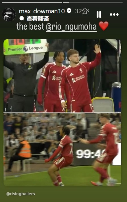 说念曼晒出了恩古莫哈代表利物浦替补登场,以及打进绝杀球的期间,配文写说念:最棒的恩古莫哈。