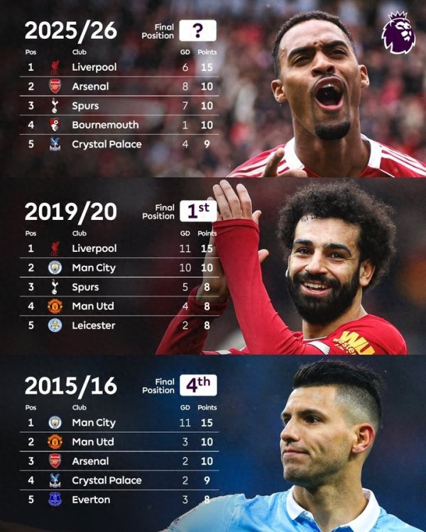 直播吧09月22日讯 据英超官方统计,本赛季英超5轮事后,利物浦5分领跑积分榜,这种情况在历史上只出现过3次,而利物浦独占2次。且前次利物浦取得如斯开局情况最终见效夺冠。 2015/16赛季,曼城,最终名挨次4 2019/20赛季,利物浦,最终夺冠 202526赛季,利物浦,最终名次? 【联系新闻】英超积分榜:阿森纳重回第2距榜首5分,曼城近4轮1胜排第9 独家看英超就在咪咕......查看更多