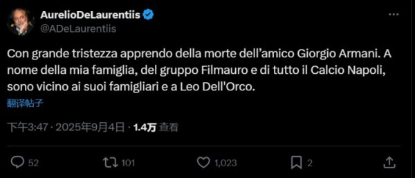 阿玛尼创举东谈主亏蚀,德佬漫骂:代表那不勒斯向他的家东谈主暗示慰问