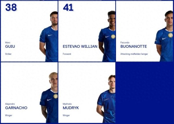切尔西官网最新官宣的2东谈主暂无号码 切尔西官网流露的一线队球员贪图29东谈主。此外,还有3东谈主是这个夏窗截止后也莫得惩办掉的球员:斯特林、大卫-福法纳、迪萨西,这三东谈主不在一线队名单中。 切尔西官网东谈主员一览:(29东谈主) 门将3东谈主:1-罗伯特-桑切斯、12-约根森、44-斯洛尼纳 后卫10东谈主:3-库库雷利亚、4-阿达拉比奥尤、5-巴迪亚西勒、6-科尔维尔、21-哈托、23-查洛巴、24-詹姆斯、27-古斯托、29-福法纳、34-阿奇姆彭 中场7东谈主:8-......查看更多